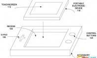 苹果手机对于手机游戏厂商来说是神一样的存在,苹果用户在游戏上的投入可谓是巨大。许多游戏厂商都在争夺这一份额,推出了适配iOS设备的键盘、手柄等配件。苹果官方对此怎么看?之前我们曾报道过,苹果申请了一个新专利:一个隐藏在iPhone Home键里面的小操控杆。这其实就是一个游戏摇杆,这次苹果又针对游戏方面申请了一个专利。该新专利名为“适用于便携电子设备的游戏配件”,已经获得了美国专利商标局的认可。通过苹果的专利示意图我们可以看到,将iOS设备放入手柄的中间部分,并通过手柄提供的各种按键进行游戏操作。此外,该装置有部分数字储存功能,可为游戏文件提供空间并可以将内置游戏连接到外置显示设备,支持无线音乐播放以及第三方应用软件的使用。这其实就是一个“马甲”,加上这个配件之后