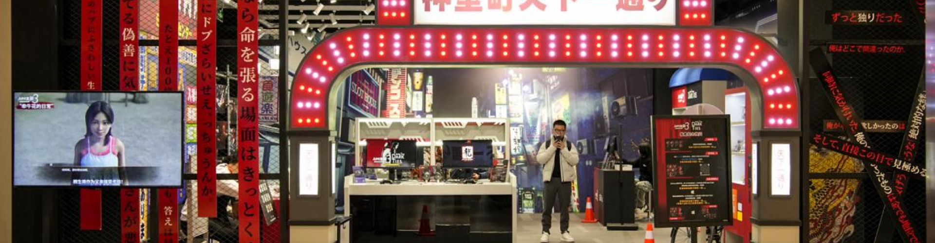 不过,“人中之龙”与拉拉宝都为我们带来的联动内容,也并没有到此结束。在拉拉宝都的四楼,“《人中之龙 极3/人中之龙3外传 Dark Ties》发售纪念快闪店”,已经装饰完毕。