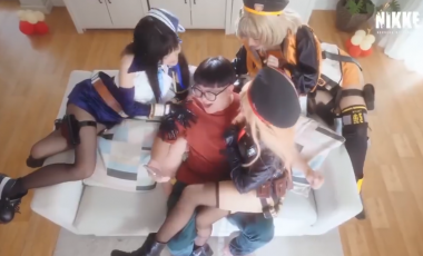 洒满阳光的花园上彩带飘飞,五彩缤纷的气球在空中跳舞,孩子们在嬉笑中追逐打闹,俨然一派合家欢乐的气氛。而在没有光照的房间里,有个戴着眼镜留着西瓜头的肥宅,正独自一人坐在沙发上。他斜眼看着不远处的欢声笑语,不以为然地撇了撇嘴,然后掏出手机点开游戏《胜利女神:妮姬》。 打开屁股以后,啊不,打开“妮姬”以后,西瓜头下的面孔开始产生变化,他的眼睛瞪大、嘴巴也随之张开。屏幕中的少女激烈地抖动着臀部,屏幕前的他视线也开始下移,整个人完全亢奋起来。他的头开始狂甩,舌头伸长快速舔弄着空气,眼睛眯成一条细缝,脸上露出痴呆又病态的笑容。 这一切随着肥宅弟弟的到来戛然而止,原来这是场属于肥宅的生日会。很快,小弟给大哥端上了蛋糕,让他开始许愿。 在肥宅的臆想中,“妮姬”中的角色们从游戏中走了出来,并且很快就像游戏中一样,豪放地向他展示出